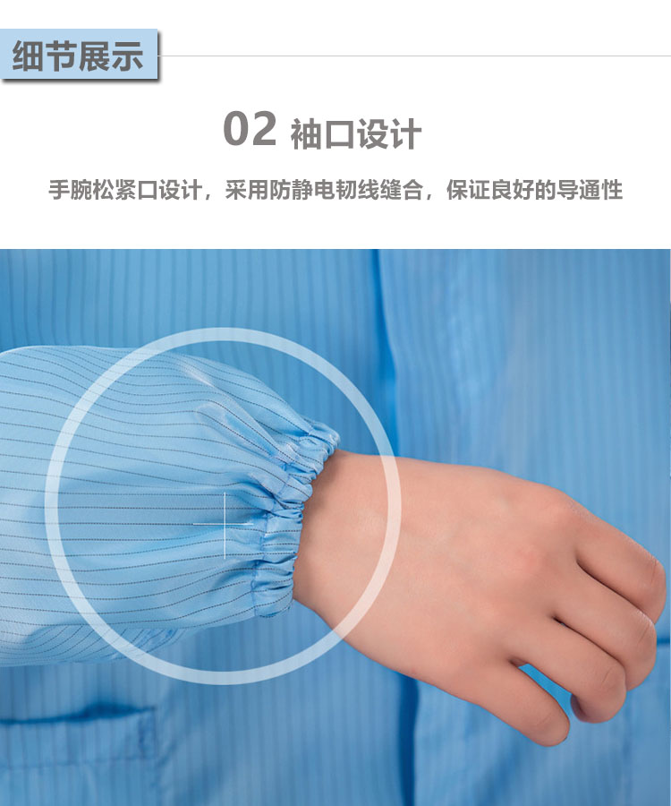 防靜電無塵分體服是由專業的防靜電面料制作,采用滌綸長絲與高性能導電纖維編織而成,具有高效、永久的防靜電、防塵性能,能有效釋放人體靜電荷,從而滿足高級別無塵環境的要求。廣泛應用于電子電器、儀器儀表、食品、生物制藥、實驗室等無塵車間及產線。