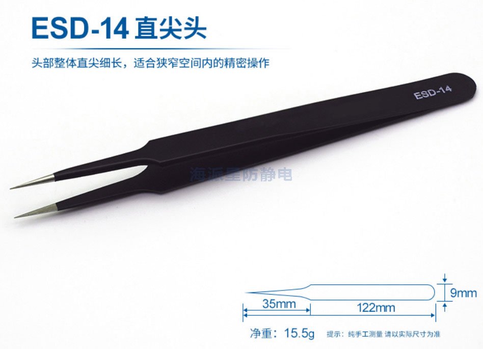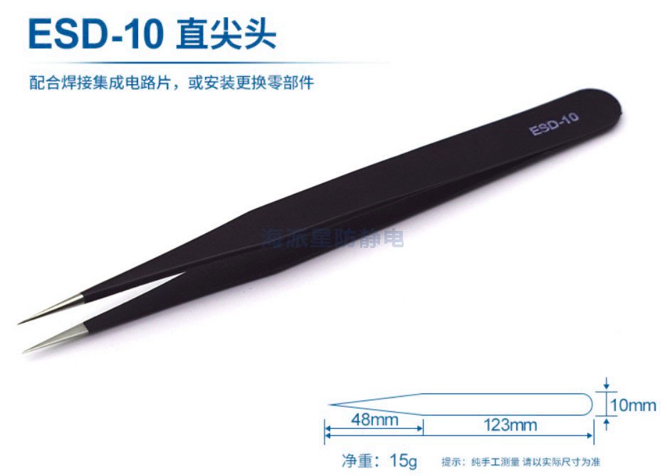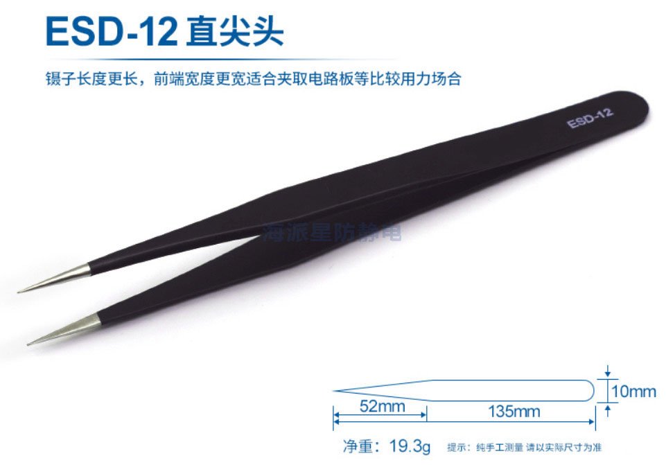| ESD-12 | 鑷子長度更長,前端寬度更寬,適合夾取電路板等比較用力場合 | ||||||
