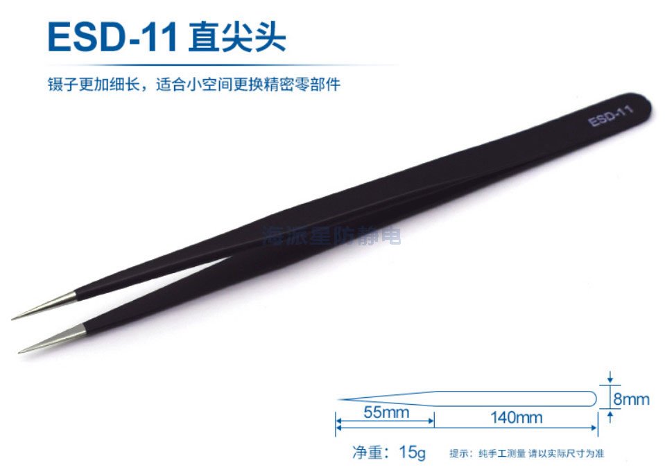 | ESD-11 | 鑷子更加細(xì)長,適用于小空間更換精密零部件 | ||||||
