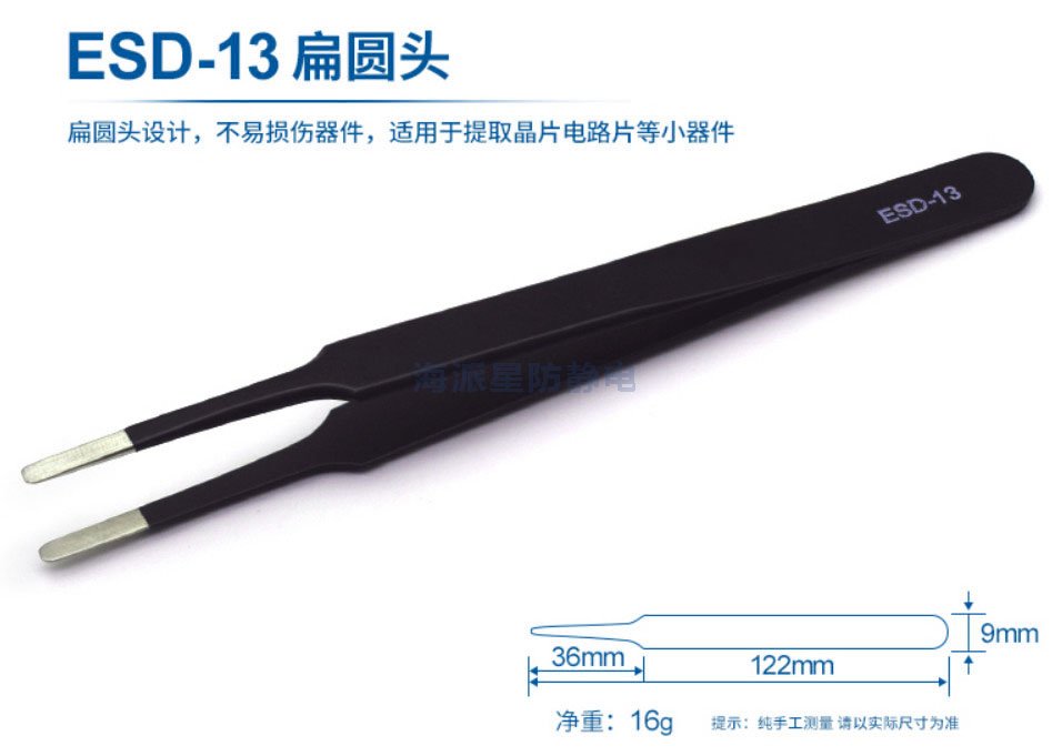 | ESD-13 | 扁圓頭設(shè)計,不易損傷器件,適用于提取晶片、電路片等小器件 | ||||||