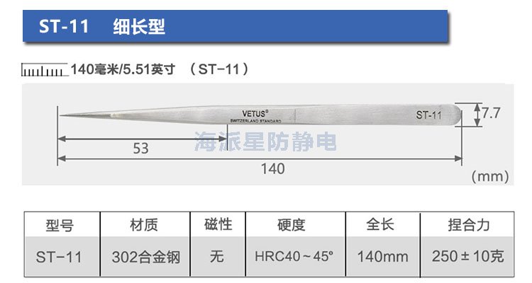 | ST-12 | 鑷子長度更長,前端寬度更寬,適合夾取電路板等比較用力場合 | ||||||